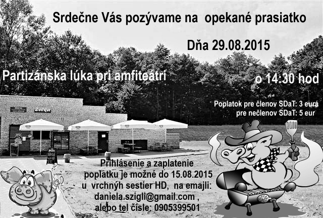 POZVÁNKA – opekanie prasiatka BA 23.07.2015 od autora: admin Srdečne Vás pozývame na opekané prasiatko na Partizánskej lúke pri amfiteátri Zelka.